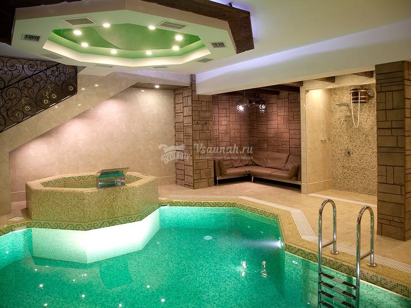 Бассейн, Теплый бассейн, Гидромассаж, Гейзер, Водопад, Подсветка,